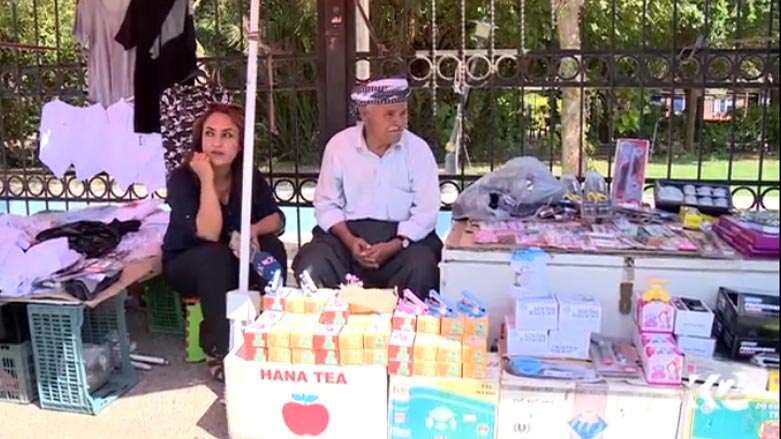 یەكێك لە و كاسبكارانەی ماوەی دە ساڵە لە بەر گەرما و سەرما كەلوپەلەكانی لەسەر ئەم شەقامانەی دادەنێت، باس لەوە دەكات رۆژانە بۆ دەستكەوتنی 250 دینار یان 1000 دینار خێر لە سەعات 7 بەیانی تا 7ی ئێوارە لە سەر ئەم شەقامەیە.