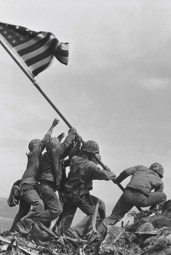 ئهم وێنهیه بووه هۆی رزگاركردنی ژیانی بهشێك له خاوهنهكانی، له ساڵی 1945 له میانی جهنگی جیهانی دووهمدا(6) سهرباز ئاڵای ئهمریكا له دوورگهی (ئایو جیما) ی ژاپۆن بڵند دهكهن،ئهو وێنهیه له لایهن حكومهتی ئهمریكاوه بۆ هاندانی گهلهكهی و درووستكردنی بیرۆكهی نزیكبوونهوهی سهركهوتنیان له جهنگهكهدا بهكاردههێنن.