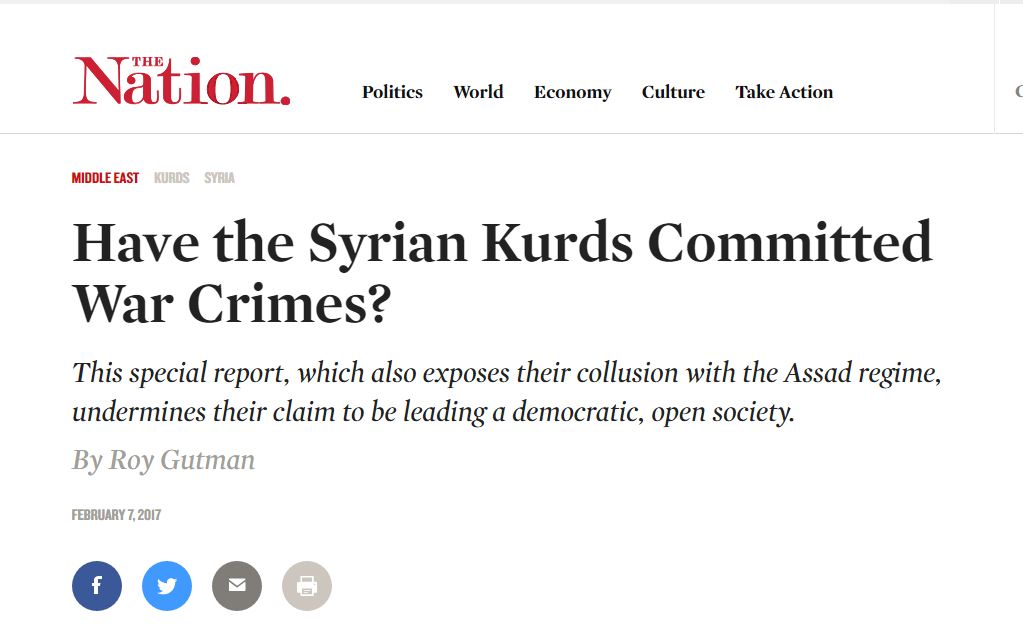 ههفتهنامهى زه نهيشنى ئهمريكى كه كۆنترين و پڕخوێنهرترين گۆڤاره و له ساڵى 1865هوه دهردهچێت، بهدواداچوونێكى وردى له بارهى پێشێلكارييهكانى پهيهده له ژێر ناوى (ئايا كوردانى سووريا تاوانى جهنگيان ئهنجامداوه) بڵاوكردووهتهوه.