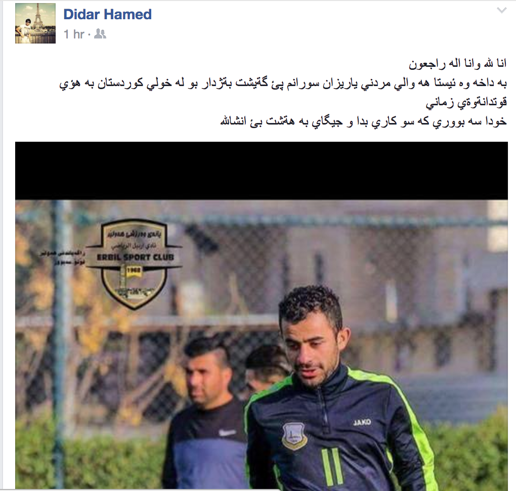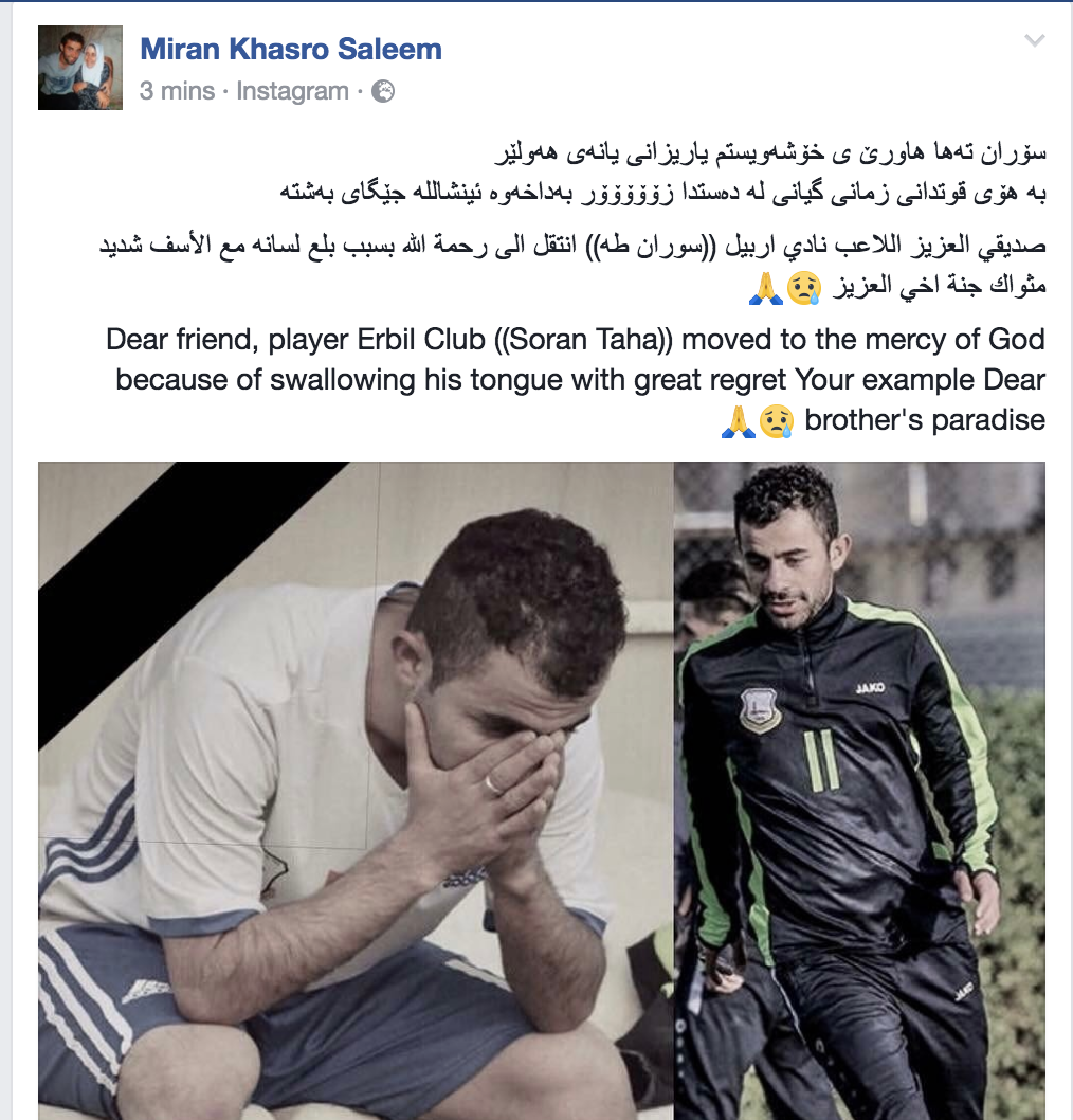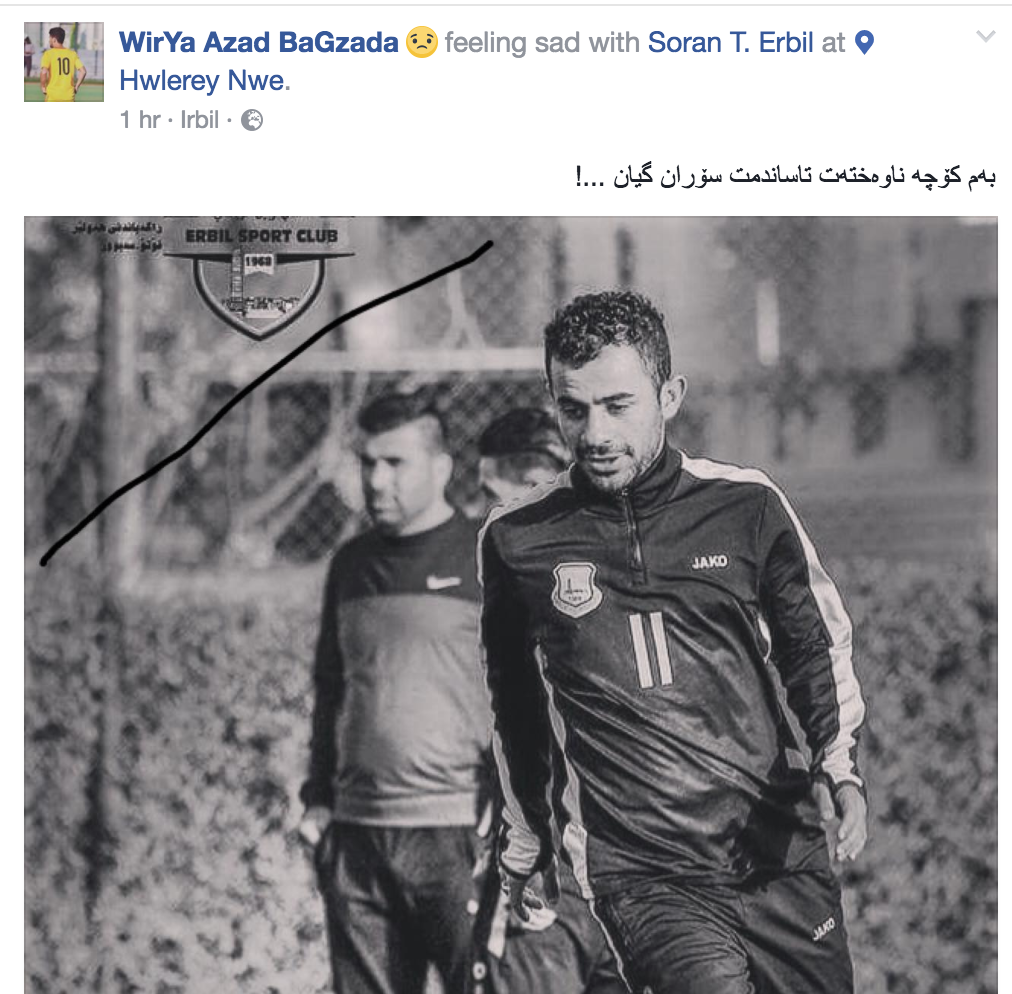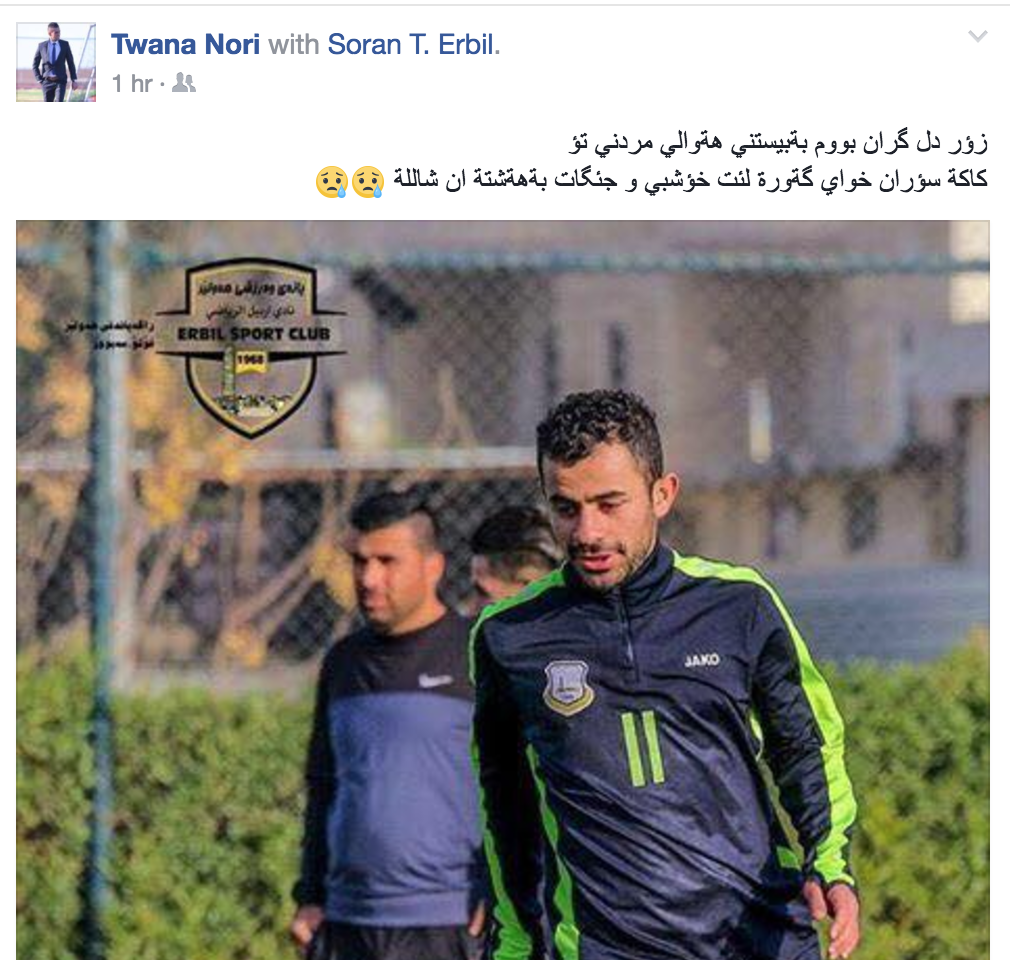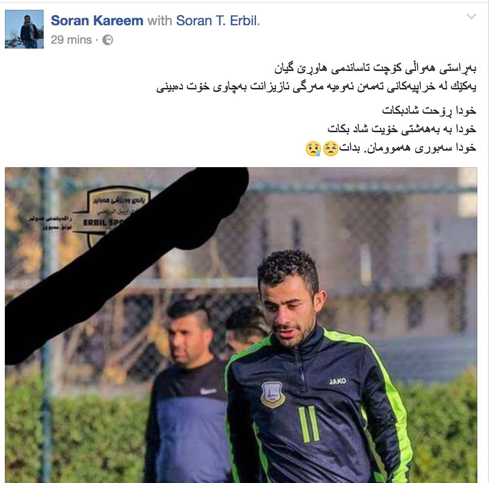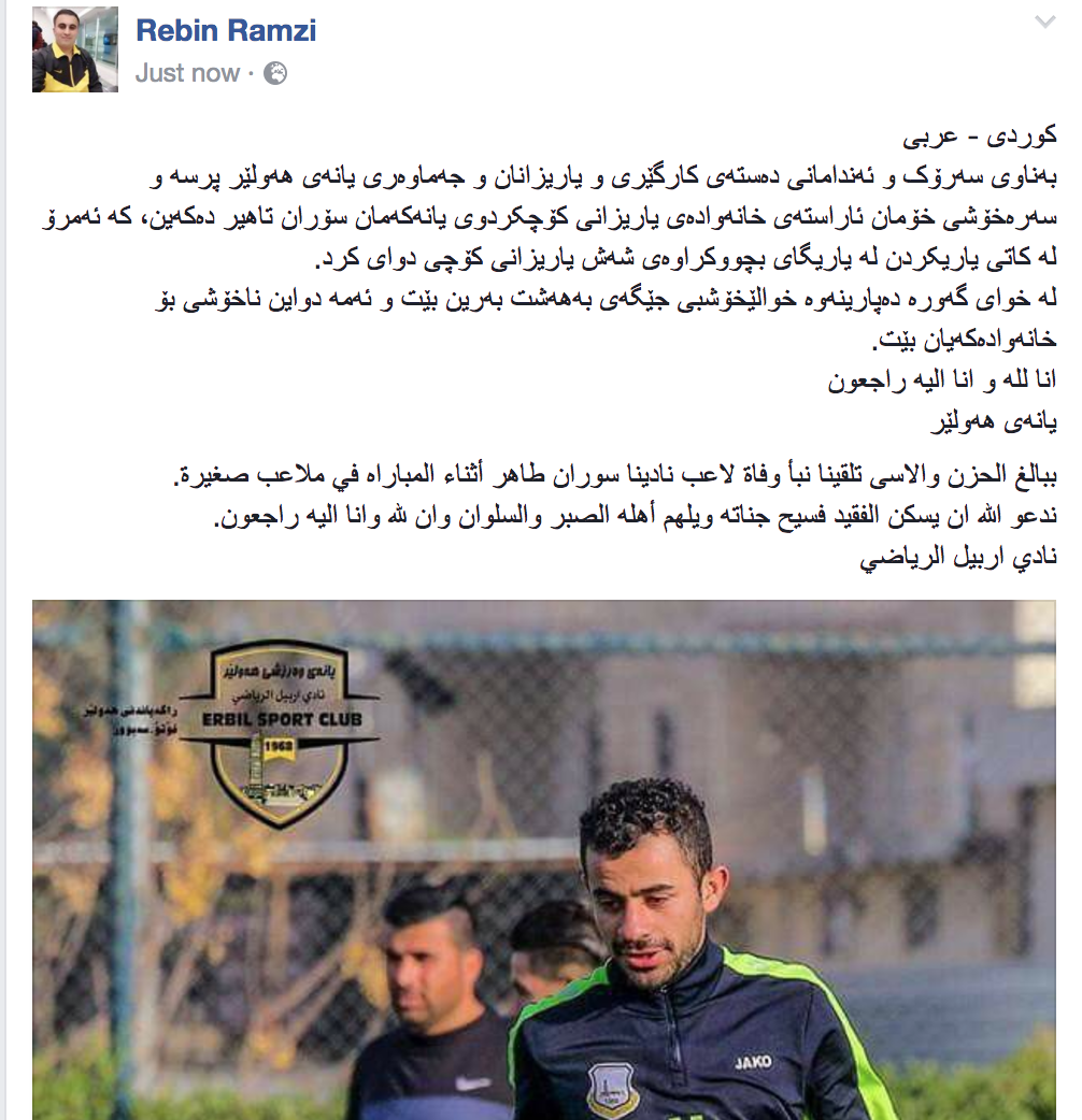 بهوێنه.. كۆچی دوایی یاریزانێكی لاوی یانهی ههولێر فهیسبووكی ههژاندووه