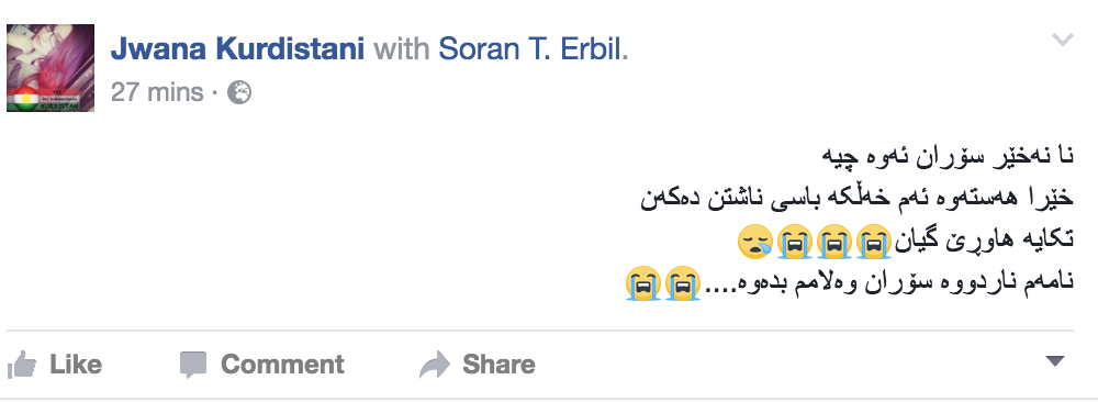 هاوڕێیهكی یاریزانه كۆچكردووهكه بهناوی (جوانه كوردستانی) لهبارهی كۆچی دوایی هاوڕێیهكهی نووسیویهتی 'نا نەخێر سۆران ئەوە چییە خێرا هەستەوە ئەم خەڵکە باسی ناشتن دەکەن، تکایە هاوڕێ گیان