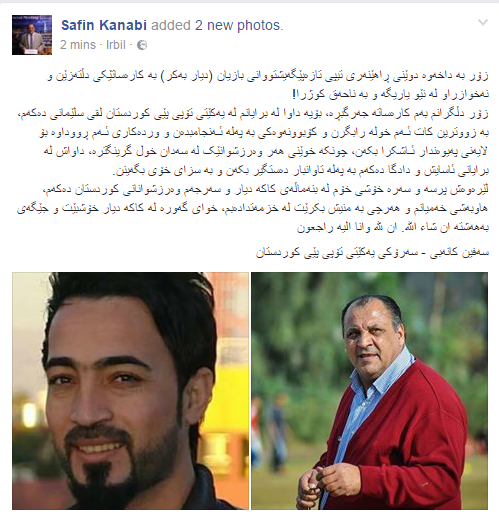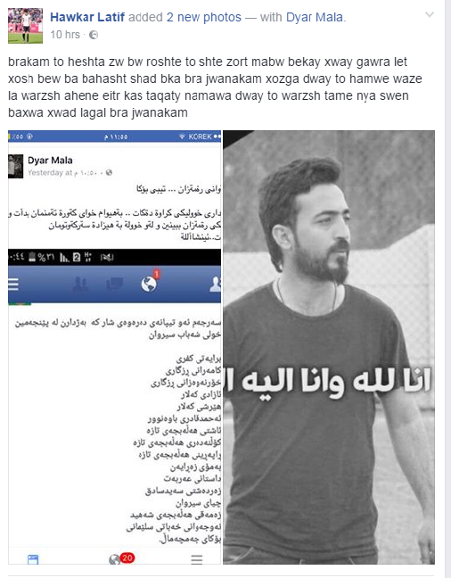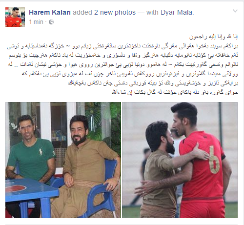 بەهۆی کوژرانی راهێنەرێک لە سلێمانی، دەیان کەس لە تۆڕی کۆمەڵایەتی فەیسبووک دڵگرانن و وێنەی پڕۆفایلەکانیان رەش دەکەن.