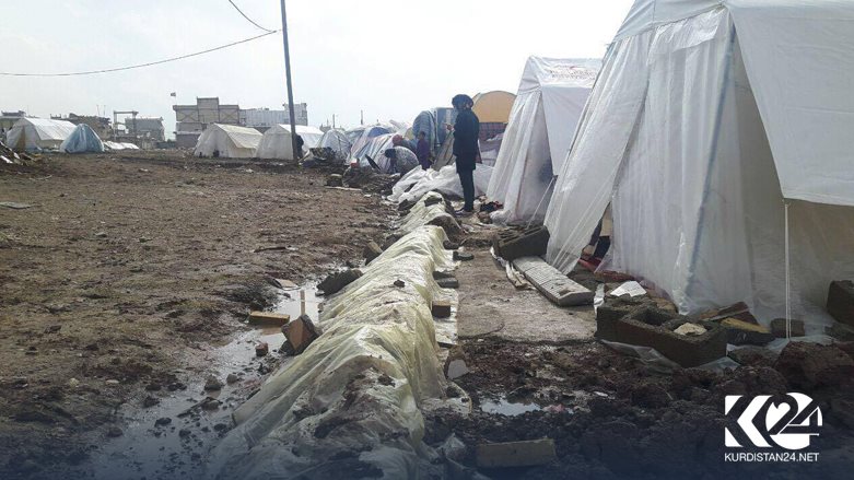 ئێستاش كه شهپۆلێكی بارانبارین ناوچهكهی گرتووهتهوه، ئهو خهڵكهی لهناو خێوهت و ژێر نایلۆنهكاندا ژیان دهگوزهرێنن، بارودۆخیان زۆر خراپ بووهو لهناو قوڕ و لیتهدا گیریانخواردووه.
