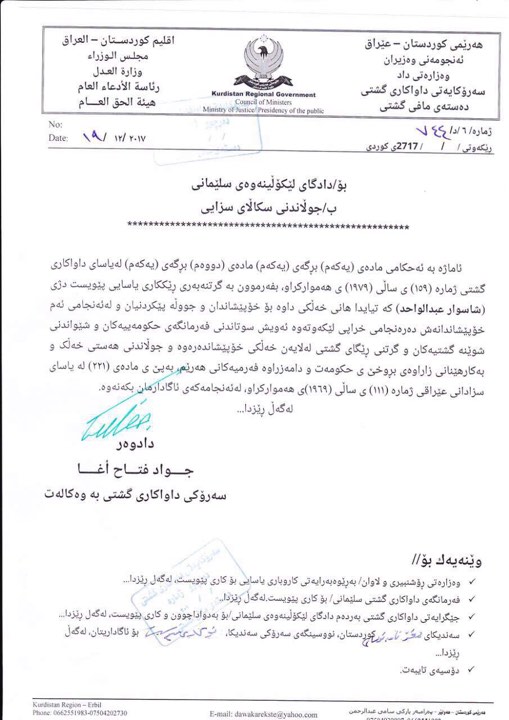 ئهمهش دوای ئهوهی داواكاری گشتی به نووسراوێكی فهرمی داوای له دادگای لێكۆڵینهوهی سلێمانی كردبوو پهخشی كهناڵی ئێن ئاڕ تی رابگرێت بهتۆمهتی ئهوهی هانی توندوتیژیی و پشێوویی دهدات.