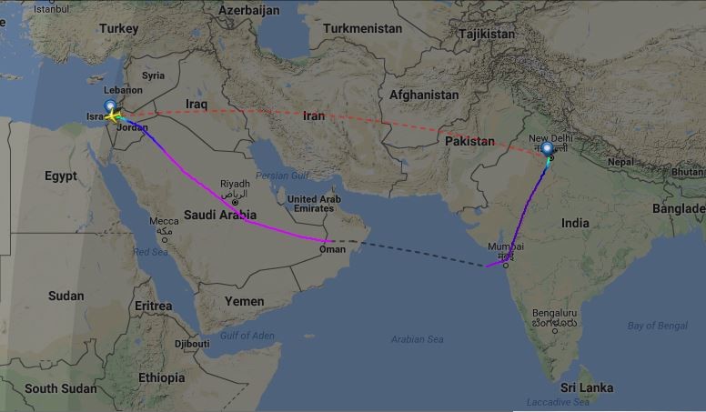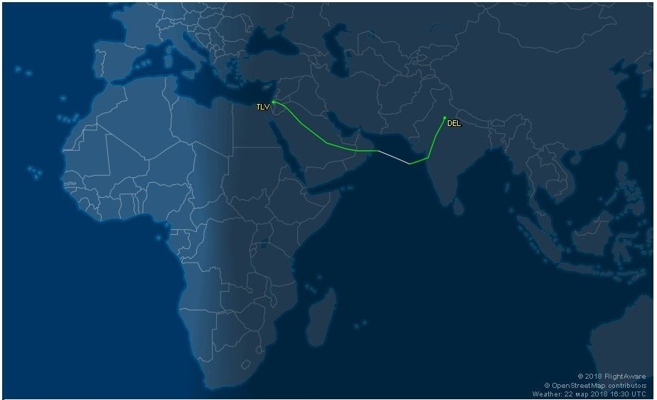 سايتى (Flightradar24)، تايبه‌ت به‌ چاودێرى گه‌شتى فڕۆكه‌وانى مه‌ده‌نى له‌ جيهاندا بڵاويكرده‌وه‌، گه‌شتى ژماره‌ (AI139) له‌ نيوده‌لهييه‌وه‌ به‌ ئاسمانى عه‌ره‌بستاندا گه‌يشته‌ ته‌لئه‌بيب.