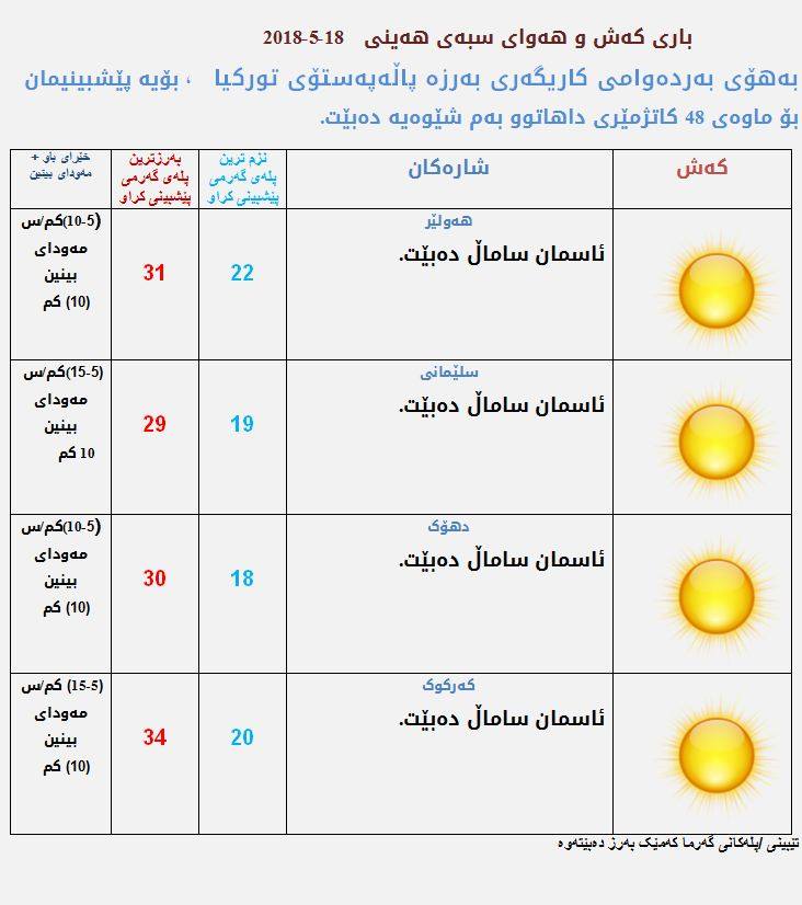 رهوشى كهشوههوا و پلهكانى گهرماى سبهی ههینى له ههرێم بهم جۆره پێشبينى كردووه