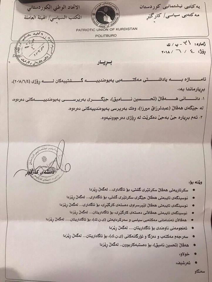 له بهیاننامهیهكدا دهستهی كارگێڕی یهكێتی نیشتیمانی كوردستان پۆستی بهپرسی پهیوهندییهكانی دهرهوهی حزبهكهی پڕدهكاتهوه، كهبههۆی كۆچی دوایی عهبدولڕهزاق فهیلی ئهو پۆسته واڵا ببوو.