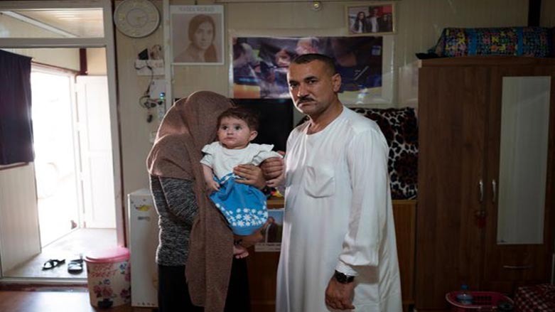 ئێستا حوزنى و جهيلانى هاوسهرى له كهمپێكى ئاوارهكان له پارێزگاى دهۆك ژيان بهسهر دهبهن و پێش چهند مانگێك جهيلان كۆرپهيهكى بووه و به هۆى ئهو شۆكهى تووشى بووه، ئاماده نهبوو، رووخسارى بۆ كامێرا دهربخات.