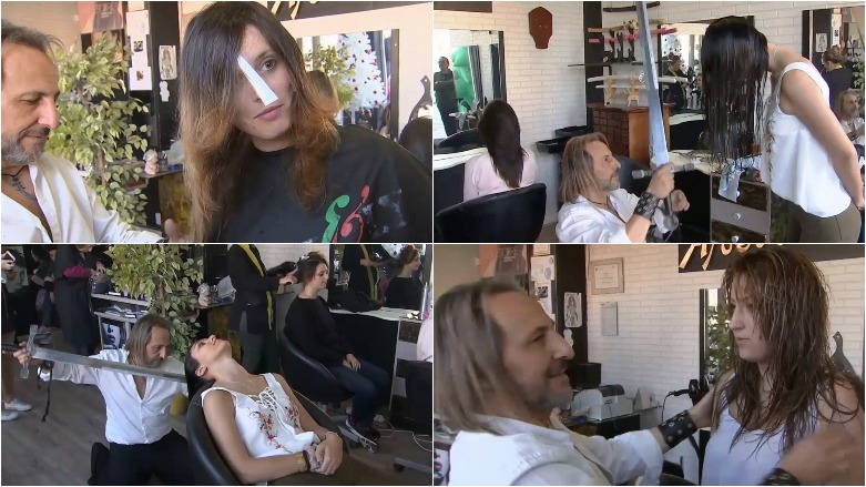 ئارایشگەرێکی ئیسپانی بە شمشێر و ئاگر پرچی خانمان دەبڕێت. ئالبێترتۆ وەك جەنگاوەرێکی نینجا ئەو ئامێرە بڕەر و تیژانە بەدەستبردییەکی زۆر بەکار دێنێت. بەڵام ئەو خانمانەی ئەم شمشێرانە لەسەر سەریان دەسووڕێنەوە، لەجیاتی ئەوەی خەمی گیانی خۆیان بێت، پەرۆشی ستایلی قژەکەیانن.