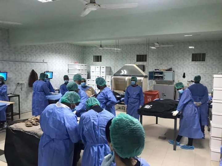 ئهمڕۆ تیمی پزیشكی تایبهتمهند له پزیشكی دادی بهغدا به سهرپهرشتی دكتۆر زهید عهلی عهباس، بهڕێوبهری گشتی پزیشكی دادی بهغدا پشكنین بۆ تهرمهكان دهستیپێكرد.