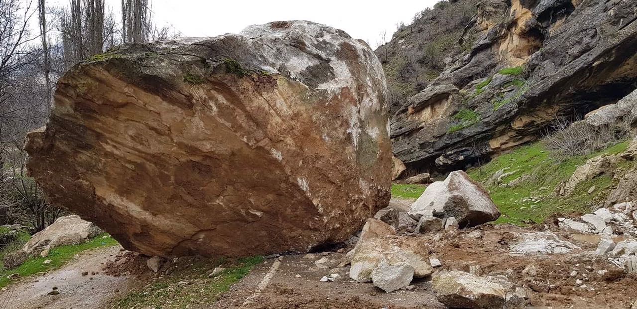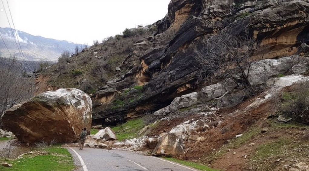 ئهو هاووڵاتییه دهڵێت: "بههۆی كهوتنه خوارهوهی بهرده گهورهكهوه رێگای هاتووچۆی ئۆتۆمبێل له ناوچهكهدا نهماوه".