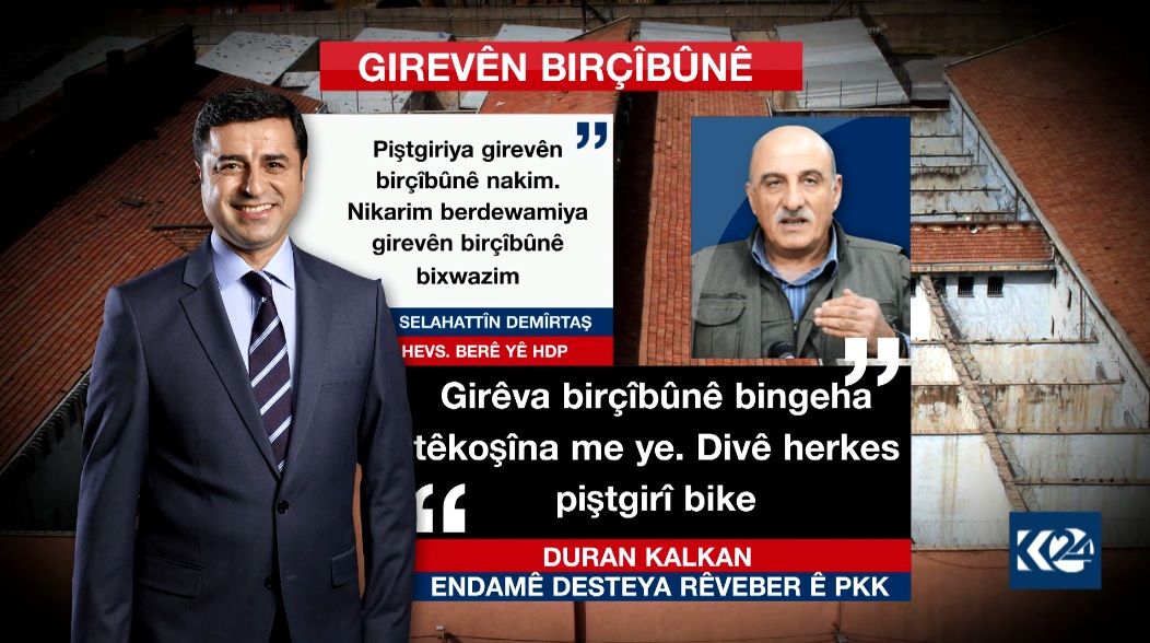 دەمیرتاش دژی مانگرتنە و داوای کۆتایی پێهێنانی دەکات، لەبەرامبەردا بەرپرسانی پەکەکە لە قەندیل داواى فراوانتربوونی چالاکیی مانگرتن لە خواردن دەکەن.