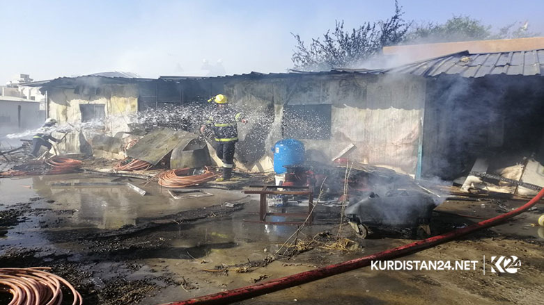 ئهمڕۆ دوای نیوهڕۆ ئاگر له چهند كابینهیهك له گهڕهكی وهزیرانی شاری ههولێر كهوتهوه، كه لهلایهن كۆمپانیایهكی توركییهوه وهك كۆگای پلاستیكی بهكاردههێنران.