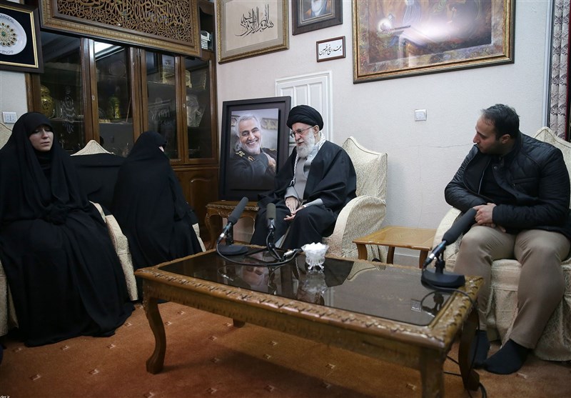 ئایهتوڵڵا عهلی خامهنهیی، رێبهری باڵای كۆماری ئیسلامی ئێران، بۆ سهرهخۆشی دهچێته ماڵی قاسم سولهیمانی، فهرماندهی فهیلهقی قودسی سهر به سوپای پاسداران، كه لهلایهن فڕۆكهی بێفڕۆكهوانی ئهمهریكا له لهسهر رێگهی فڕۆكهخانهی نێودهوڵهتی بهغدا كوژرا.