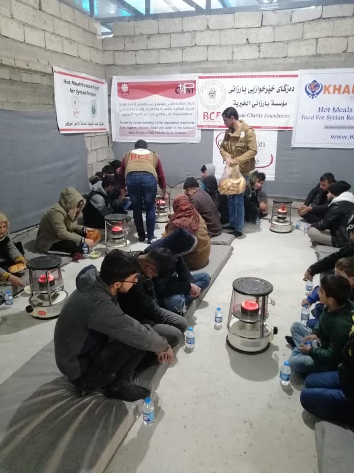 رێکخراوهكانی "ئيل دى ئێس"ى ئەمهریکایی و "خەلسا ئاید" و "کابنی" پشتیوانی پڕۆژەی دەزگای خێرخوازیی بارزانی دەکەن بۆ دابینکردنی خواردنی گەرم و پێشوازی پەنابەران.