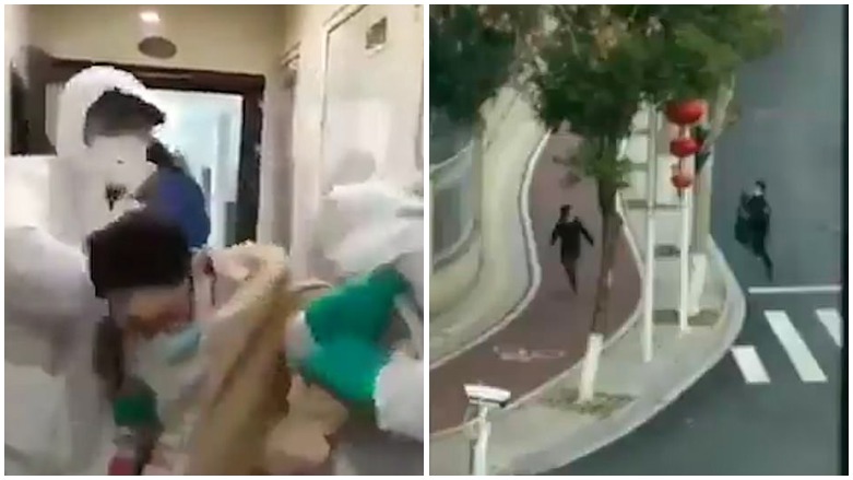 بەرپرسانی تەندروستی شاری وهانی چین، ئەو هاووڵاتیانەی گومانی تووشبوونی ڤایرۆسی کۆرۆنایان لێ دەکرێت، لە ماڵەکانیان دەیانهێننەوە دەرەوە و بەزۆر دەیان بەن بۆ کەمپە تەندروستییەکان.