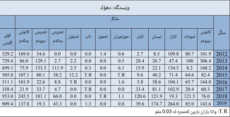 بەگوێرەی داتاکان، بەشێوەیەکی گشتی، لە ساڵی 2019، لە پارێزگاکانی هەرێمی کوردستان زۆرترین باران باریووە.