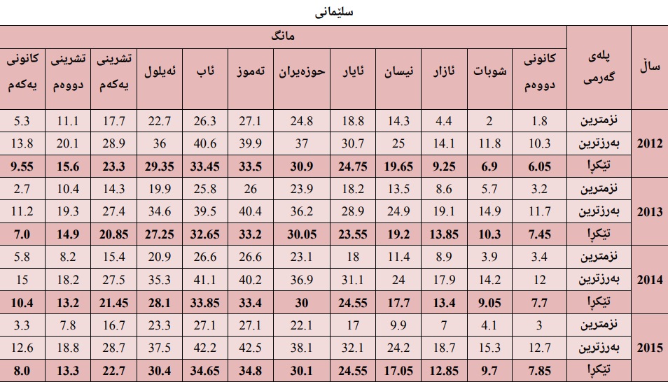 ئامارەکانی کەشوهەوای هەشت ساڵی رابردووی هەرێمی کوردستان راگەیەندرا