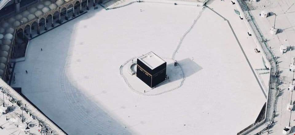له وێنهكاندا شوێنی نوێژ، چێوهی تهواف و سهفا و مهروا تهواو له نوێژكاران و موعتهمهرهكان چۆڵن، ئهمهش دوای ئهوهی دهسهڵاتدارانی سعوودیه وهك رێكارێك بۆ رێگریكردن له بڵاوبوونهوهی ڤایرۆسی كۆرۆنا، بڕیاریاندا عهمره و زیارهتكردنی ماڵی خودا قهدهغه بكهن.
