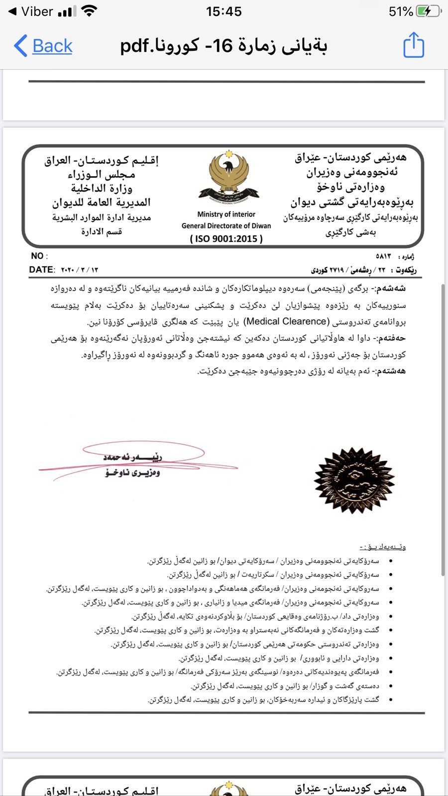 وەزارەتی ناوخۆ هۆشداریی دەداتە ئەو کەسانەی بە قاچاغ گەڕاونەتەوە، ئەگەر زوو خۆیان رادەست نەکەن، وەکو کەسانێک کە مەبەست نەخۆشییەکە بڵاوبکەنەوە، مامەڵەیان لەگەڵ دەکرێت.