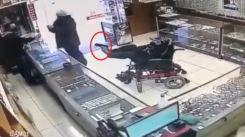 لە حاڵەتێکی دزیکردنی جیاواز لە بەرازیل، کەسێکی خاوەن پێداویستی تایبەت کە لەسەر کورسییە، بە قاچی، چەکەکەی ئاراستەی خاوەن دوکانێکی خشڵ و زێڕ دەکات و لەگەڵ هاوڕێیەکی دزییەکە دەکەن.