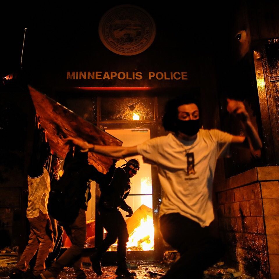 كاتژمێر 9:34 شه‌وی 28ی ئایار، خۆپیشانده‌ران له‌ دوای سێ رۆژ خۆپیشاندانی پڕ توندوتیژی له‌ شاری مه‌نیئاپلس و سان پاول، بینای 3ی پۆلیسی مه‌نیئاپلس-یان سووتاند له‌كاتێكدا له‌ سه‌ر له‌به‌یانی هه‌مان رۆژه‌وه‌ بیناكه‌ به‌ بڕیاری وه‌زاره‌تی ناوخۆی ویلایه‌ته‌كه‌ چۆڵكرابوو.