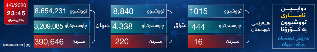 ئاماری تووشبوانی هه‌رێم هه‌زار كه‌سی تێپه‌ڕاند.. له‌ سلێمانی 77 كه‌سی دیكه‌ تووشی كۆرۆنا بوون