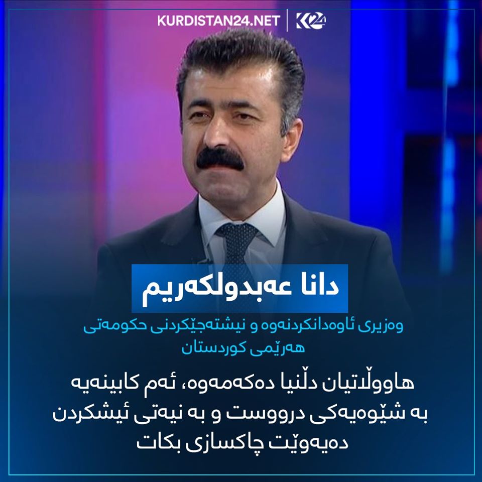 دانا عهبدولكهریم، وهزیری ئاوهدانكردنهوه و نیشتهجێكردنی حكومهتی ههرێمی كوردستان، له میانی بهشداریكردنی له "ژووری ههواڵ"ـی كوردستان24 رایگهیاند، له چوارچێوهی ئهنجوومهنی وهزیراندا، ئهنجوومهنی چاكسازی پێكدههێنرێت. هاووڵاتیان دڵنیا دهكهمهوه، ئهم كابینهیه به شێوهیهكی درووست و به نیهتی ئیشكردن دهیهوێت چاكسازی بكات.
