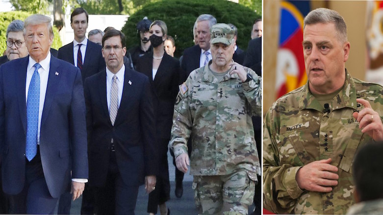 ئێواره‌ی 1ی حوزه‌یران له‌كاتێكدا خۆپیشاندانه‌كان له‌ نزیك گۆڕه‌پانی لافایت - واشنتن دی سی، له‌وپه‌ڕی تاوداندابوو ، جه‌نه‌رال مارك میلی سه‌رۆكی ئه‌ركانی هاوبه‌شی سوپا، هاوشانی دۆناڵد تره‌مپ بینرا، كاتێك تره‌مپ و به‌شێك له‌ ستافی حكومه‌ت به‌ره‌و كڵێسای سانت جون، به‌رێكه‌وت و له‌وێ دۆناڵد تره‌مپ، په‌رتوكی ئینجیلی به‌رزكرده‌وه‌، به‌ڵام دوای 11 رۆژ، ئه‌م جه‌نه‌راله‌ داوای لێبووردن له‌م كاره‌ی ده‌كات.