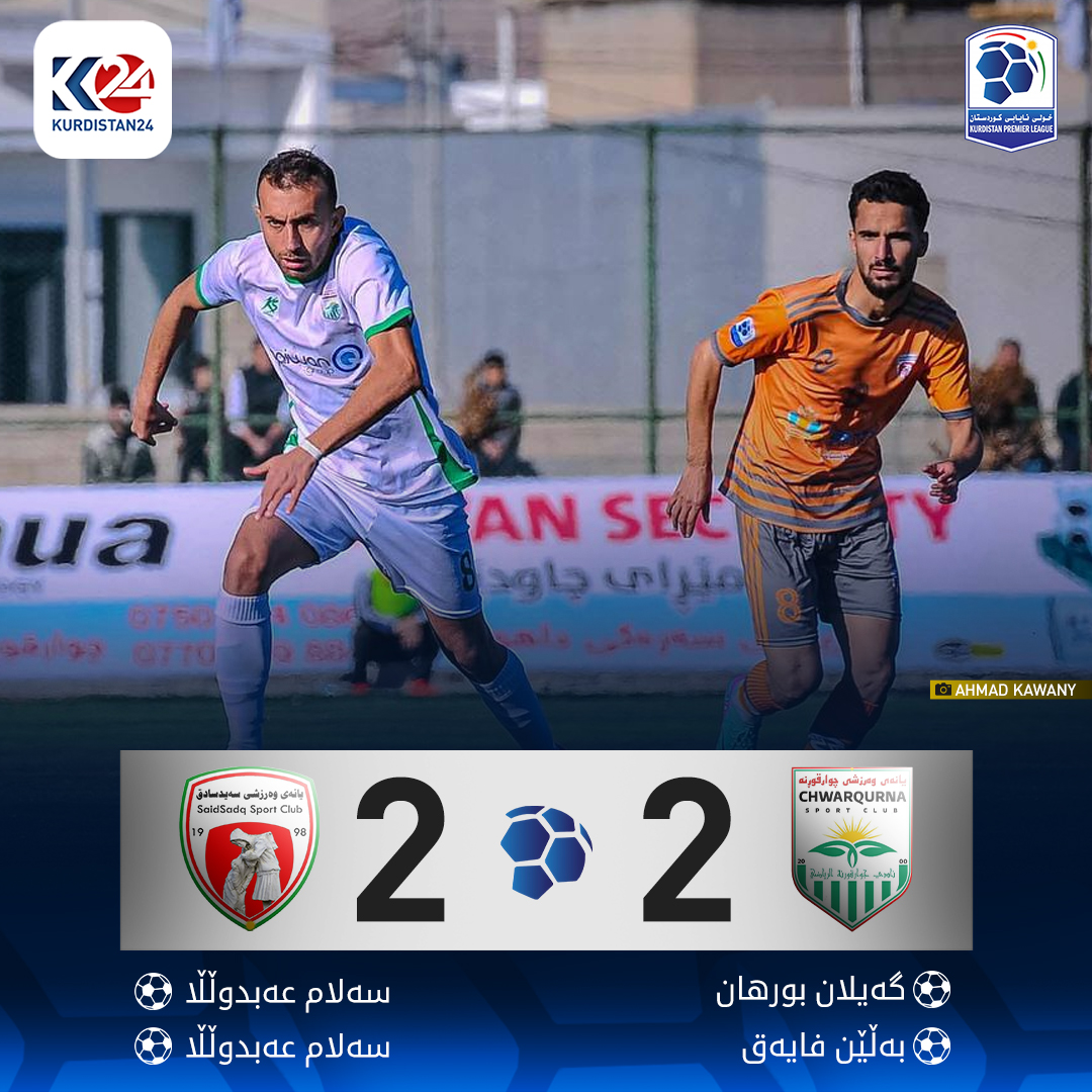 دواتر بەڵێن فایەق لە رێگەی لێدانی پێناڵتی ئەنجامەكەی بۆ چوارقوڕنە یەكسان كردەوە و یارییەكەش بە 2 گۆڵ بۆ هەرلایەكیان كۆتایی هات، بەمەش ئەم دوو یانەیە لەم وەرزە هێشتا نەیانتوانیوە تامی سەركەوتن بكەن.