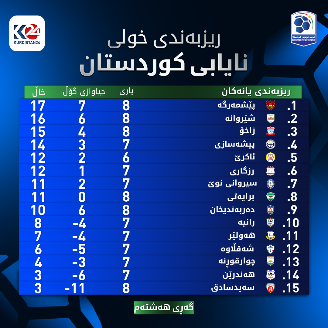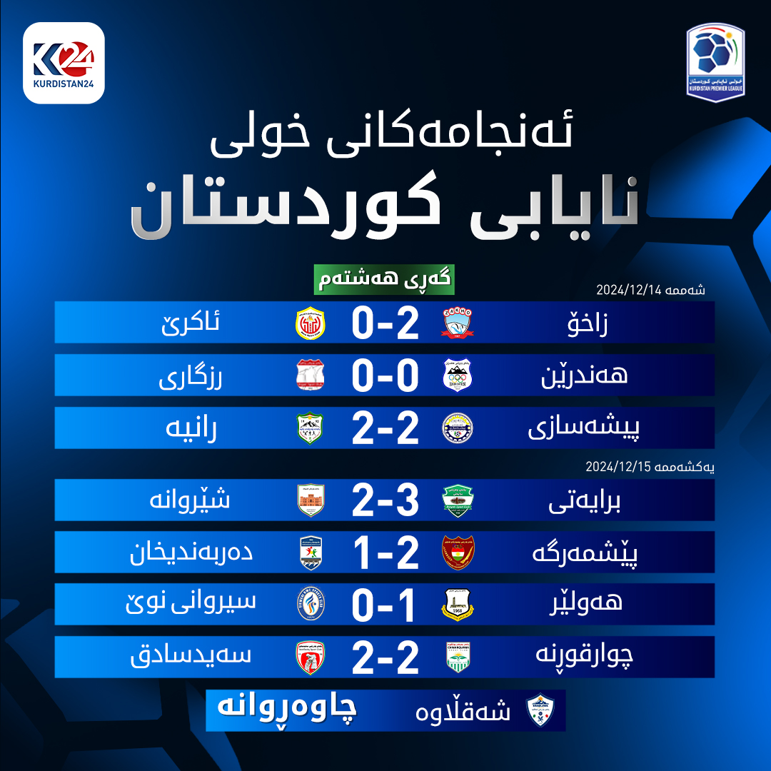 برایەتی سێیەمین سەركەوتنی تۆمار كرد و بە كۆكردنەوەی 11 خاڵ پلەی هەشتەمی گرت، لە بەرامبەردا شێروانە پێشەنگی لەدەست دا و بە 16 خاڵ بۆ پلەی دووەم دابەزی.
