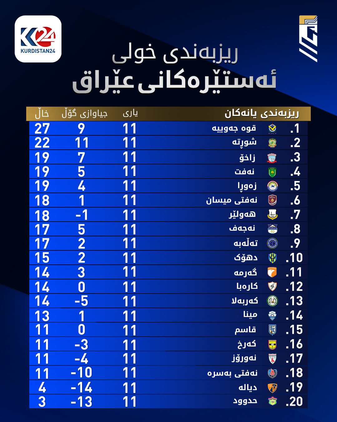 گۆڕانكاری لە خشتەی داهاتووی خولی ئەستێرەكانی عێراق روویدا