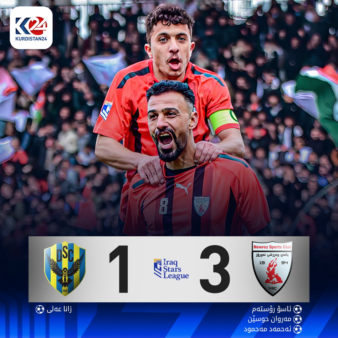 ئێوارەی ئەمڕۆ یەكشەممە، 29 دێسێمبەری 2024، لە یاریگەی یانەی نەورۆز لە خولی ئەستێرەكانی عێراق، نەورۆز و دهۆك رووبەڕووی یەكتر بوونەوە، لە خولەكی 21 ئاسۆ رۆستەم بە لێدانی پێناڵتی گۆڵی پێشكەوتنی نەورۆزی تۆمار كرد، دواتر لە خولەكی 28 مەڕوان حوسێن ئەنجامەكەی بۆ نەورۆز دوو هێندە لێكرد و بۆ دووەمجار لە یارییەكە تۆڕی گۆڵی محەمەد ساڵحی گۆڵپارێزی دهۆك هەژێنرا.