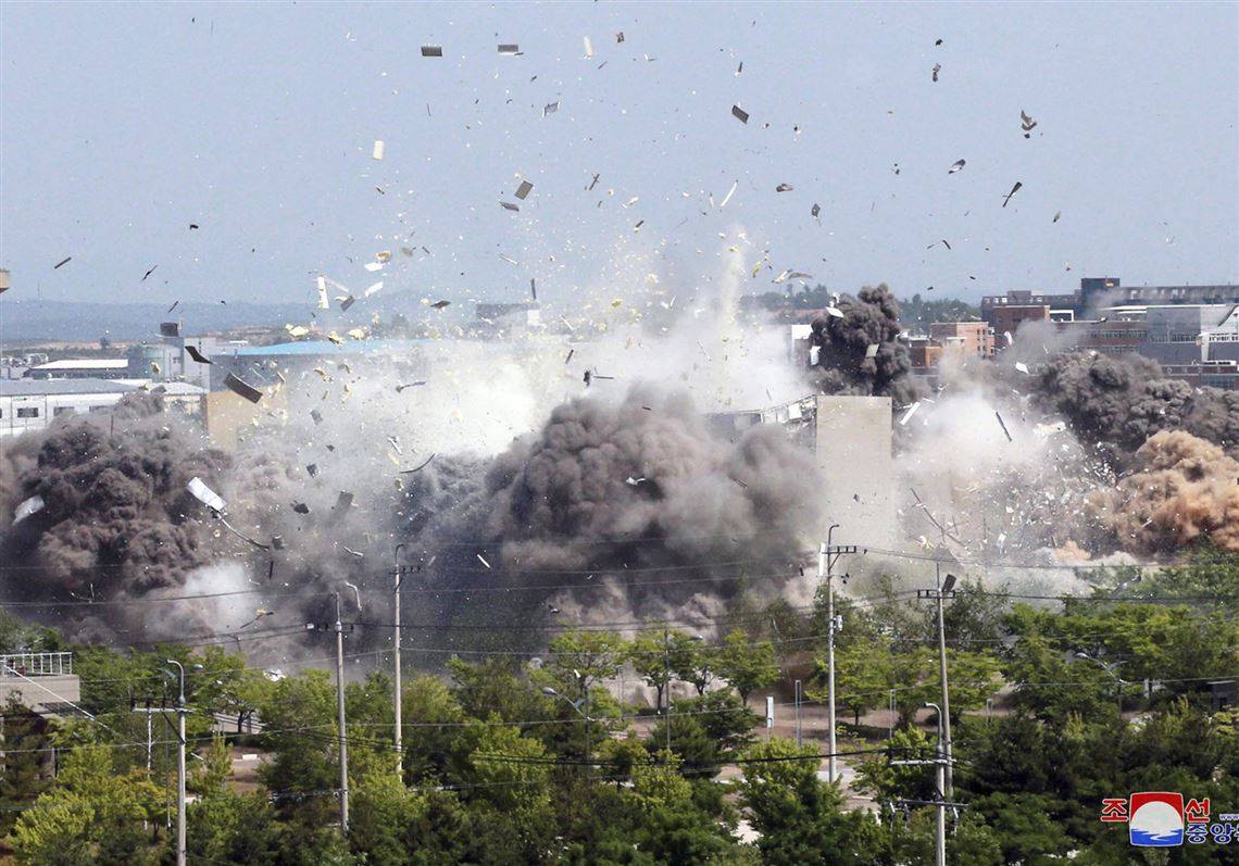 خاپووركردنی نوسینگهی پهیوهندییهكانی نێوان ههردوو كۆریا، كارێكی شهڕفرۆشییه لهلایهن كۆریای باكوورهوه، وێرای ئهوهی بیناكه چۆڵه و پێشتریش كۆریای باكوور بڕیاریداوه وێرانی بكات.