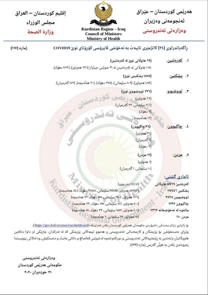 دهقی راگهیهندراوی وهزارهتی تهندروستی: