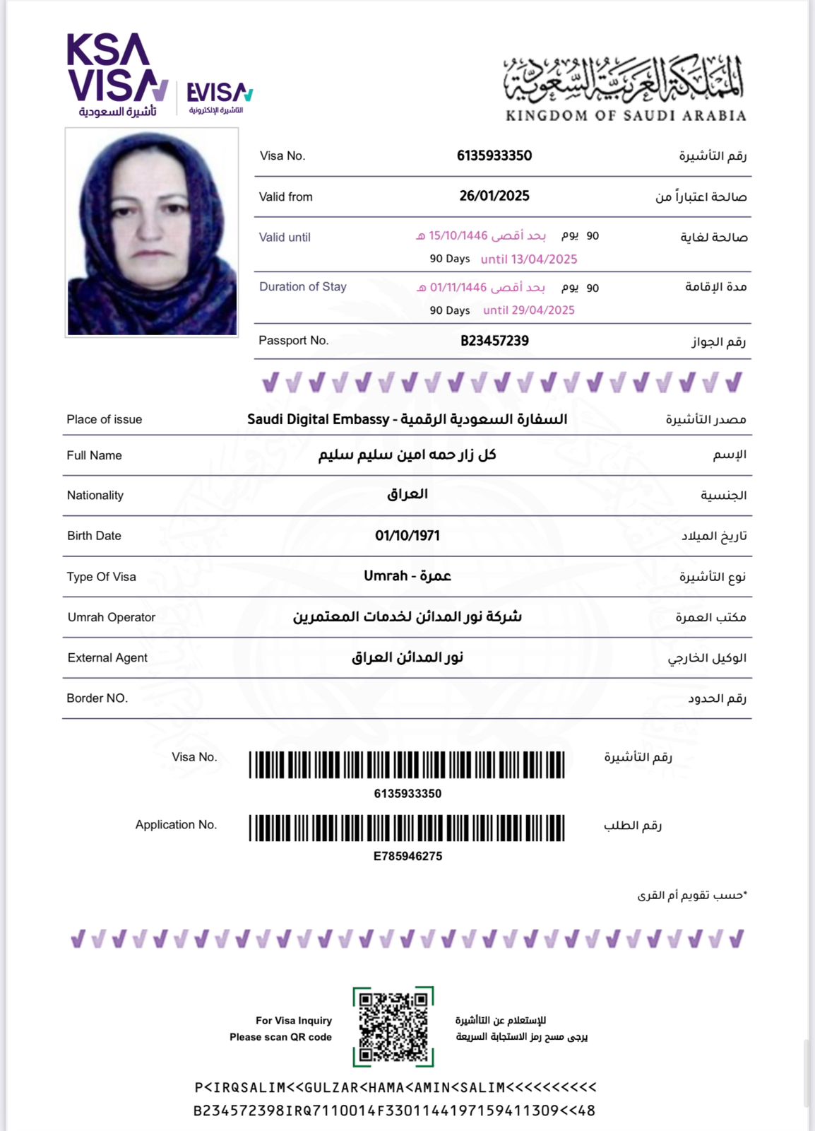 دووشەممە 27ـی کانوونی دووەمی 2025، نەبەز ئیسماعیل، گوتەبێژی وەزارەتی ئەوقاف و کارووباری ئاینی بە ماڵپەڕی کوردستان24ـی ڕاگەیاند: پاسێکی عومرەکارانی کورد کە خەڵکی سنووری پارێزگای سلێمانین، لە عەرعەری وڵاتی سعوودیە و نزیک چێشتخانەی ئەبو شوان لەگەڵ بارهەڵگرێک بەسەختی پێکیاندادا و بەهۆی ئەو ڕووداوە،ئافرەتێکی عومرەکار بەناوی(گولیزار حەمە ئەمین سالم) گیانی لەدەستدا و دوو عومرەکاری دیکەش بەهۆی سەختی برینەکەیان دۆخی تەندروستیان ناجێگیرە، دوو هاووڵاتی سعوودیش کە لەنێو بارهەڵگرەکە بوون، گیانیان لەدەستداوە.