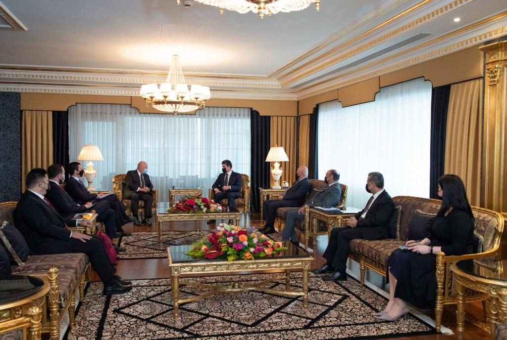 نیوەڕۆى ئەمڕۆ نێچیرڤان بارزانى، سەرۆکى هەرێمى کوردستان، پێشوازى لە کەریم خان، راوێژکارى تایبەتى تیمى نێودەوڵەتیى لێکۆڵینەوە لە تاوانەکانى داعش (یوونیتاد) کرد.