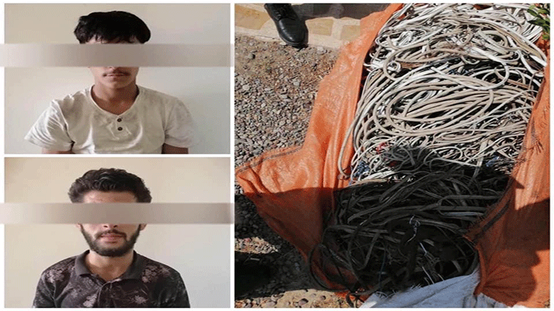 هەروەها گوتی: دوای ئاگاداركردنەوەیان لە حاڵەتێكی دزینی كۆمەڵێك كێبڵی وایەر و كێبڵی كارەبایی لە بازاڕی سیم لە گەڕەكی كوردستان، دەستبەجێ دوو تۆمەتبار بە ناوەكانی (ی.ف.م) و (و.ب.س) لەكاتی ئەنجامدانی دزییەكە دەستگیر كران.