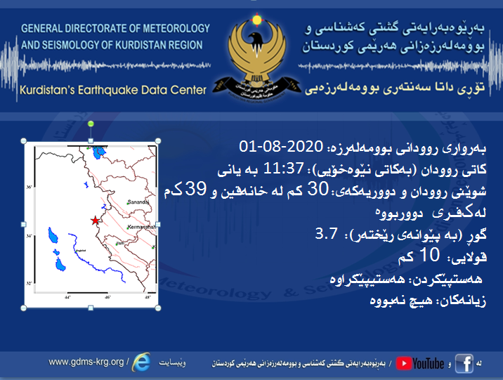 ئاماژە بەوەشكراوە، هاووڵاتيیان هه‌ستيان پێكردووه‌و هيچ زيانێكى نه‌بووه‌.