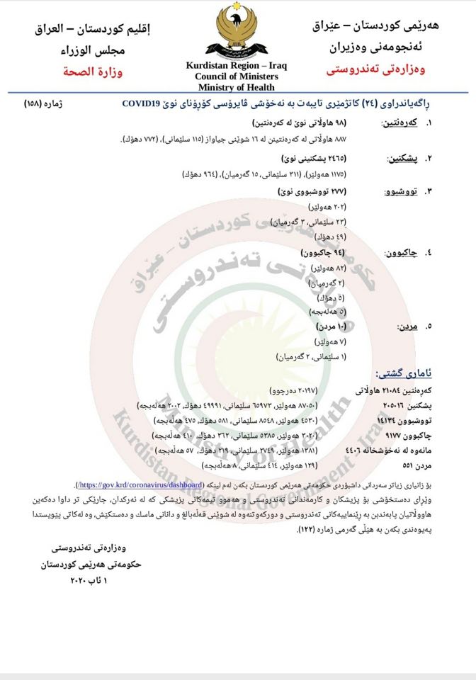 دهقی راگهیهندراوهكهی وهزارهتی تهندروستی: