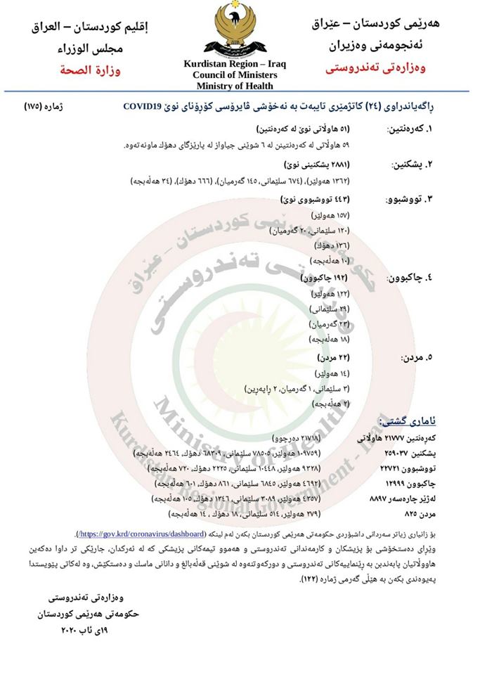 دەقی راگەیەندراوی وەزارەتی تەندروستی: