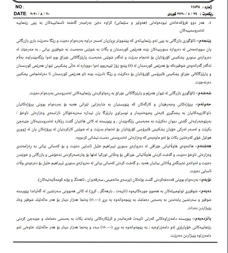 له‌ باره‌ی هاتوچۆی نێوان پارێزگاكان