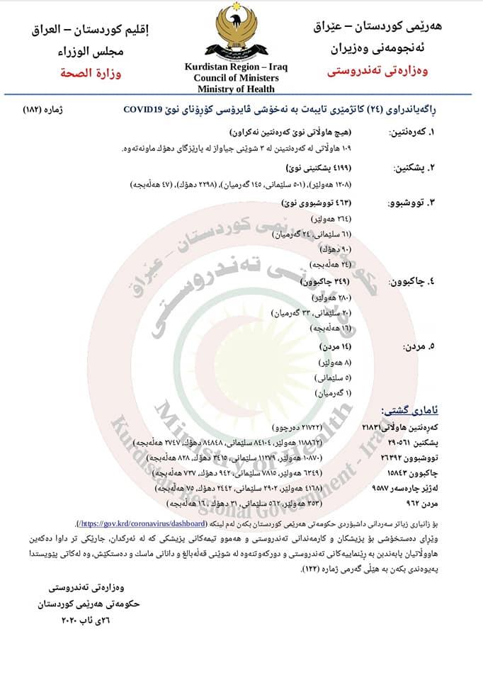 دەقی راگەیاندراوی وەزارەتی تەندروستی: ..