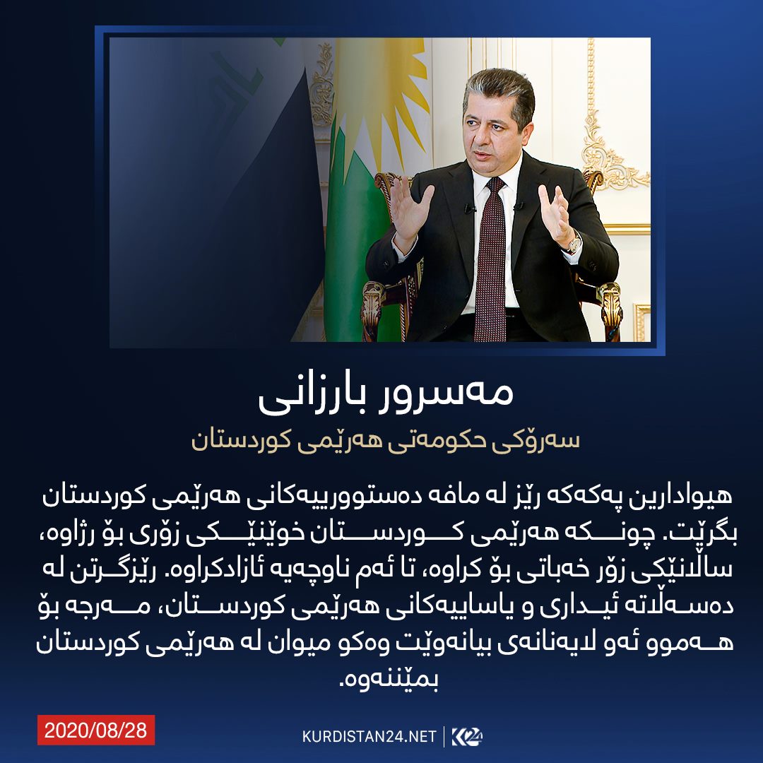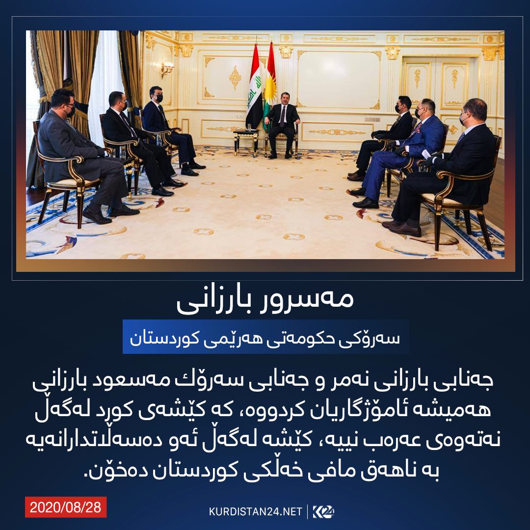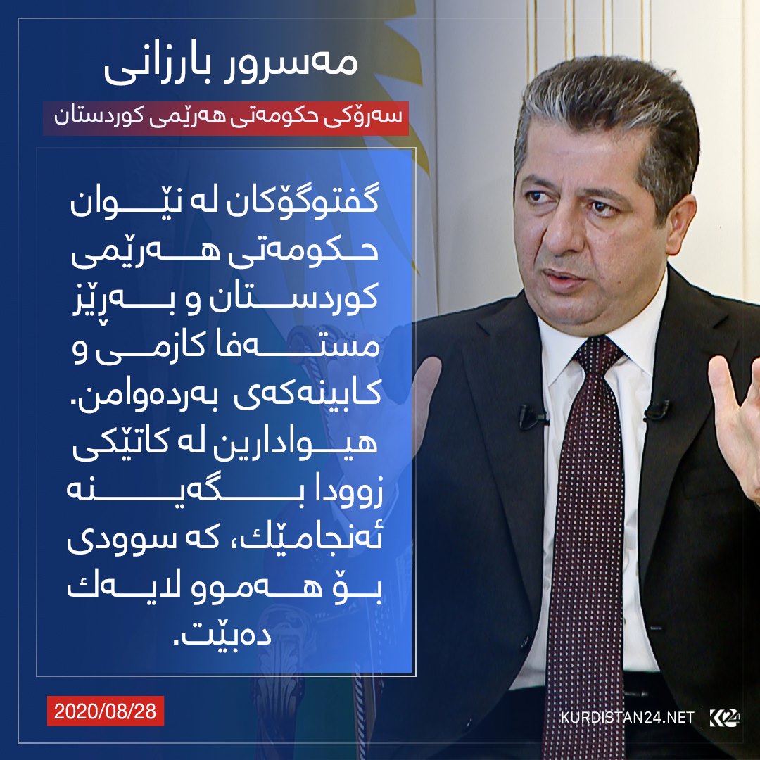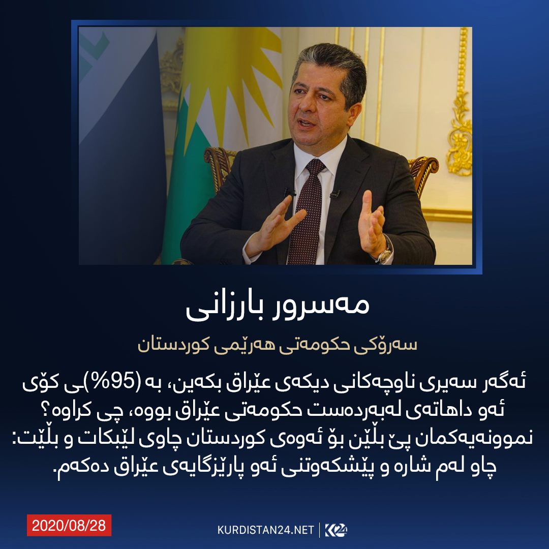 چاوپێكهوتنهكهی مهسرور بارزانی، سهرۆكی حكومهتی ههرێمی كوردستان، رۆژی (چوارشهممه 26ی ئاب/ ئۆگستی 2020 ) به بهشداری رۆژنامهنووسانی دیاری ههریهك له كهناڵهكانی (العراقیة، زاگرۆس، الشرقیة، العربیة الحدث، الجزیرة و الحرة) ئهنجامدرا. ئهم چاوپێكهوتنهش دوای ئهوه دێت رۆژی (24ی ئاب ئۆگستی 2020)، سهرۆك وهزیران چاوپێكهوتنێكی هاوشێوهی لهگهڵ میدیای كوردستانی ئهنجامدا و تێیدا به وردی باسی له پرۆسهی چاكسازی و پهیوهندییهكانی ههولێر و بهغدا و لێكهوتهكانی كۆرۆنا و رهوشی دارایی ههرێمی كوردستانی كرد.