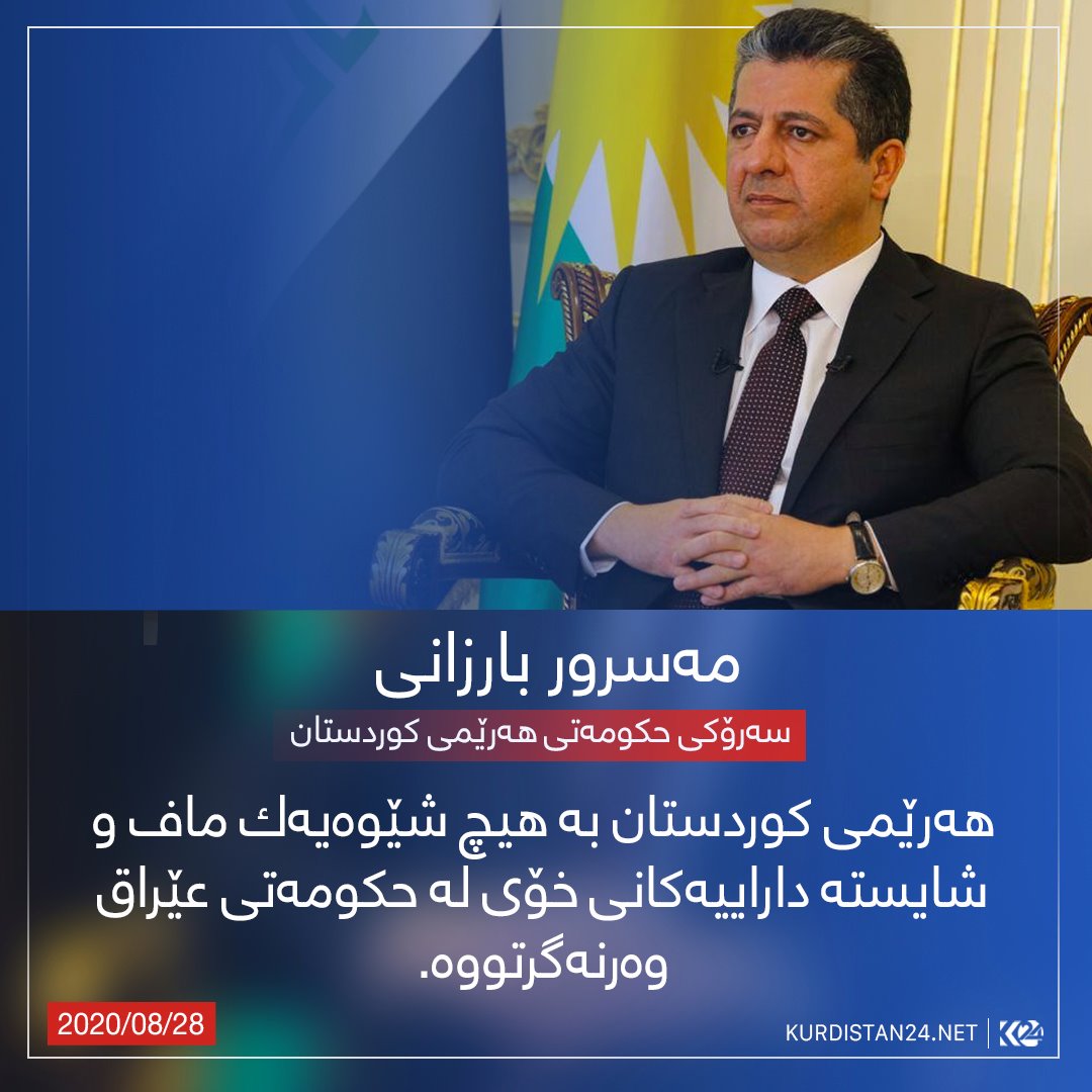 پێمخۆشه خهڵكی خۆشهویستی عێراق ئهوه بزانن، كه ههرێمی كوردستان به هیچ شێوهیهك ماف و شایسته داراییهكانی خۆی له حكومهتی عێراق وهرنهگرتووه.