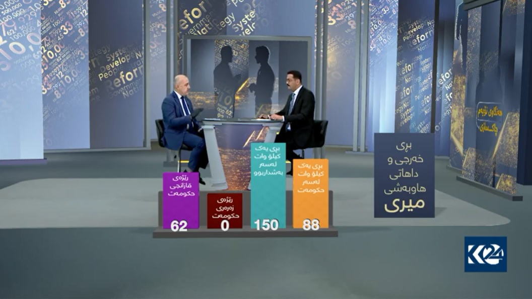بەرھەمھێنانی كارەبا بە ئاو، دیزل، نەوتی رەش و غاز دەكرێت لە ھەرێم، تێكڕای ئەم چوار جۆرەی بەرھەمھێنان، یەك كیلۆوات لە سەر حكومەت بە 88 دینار دەوستێت و حكومەت بە 30 دینار دەیفرۆشتەوە بە ماڵان واتە 58 دینار زیان دەكات.