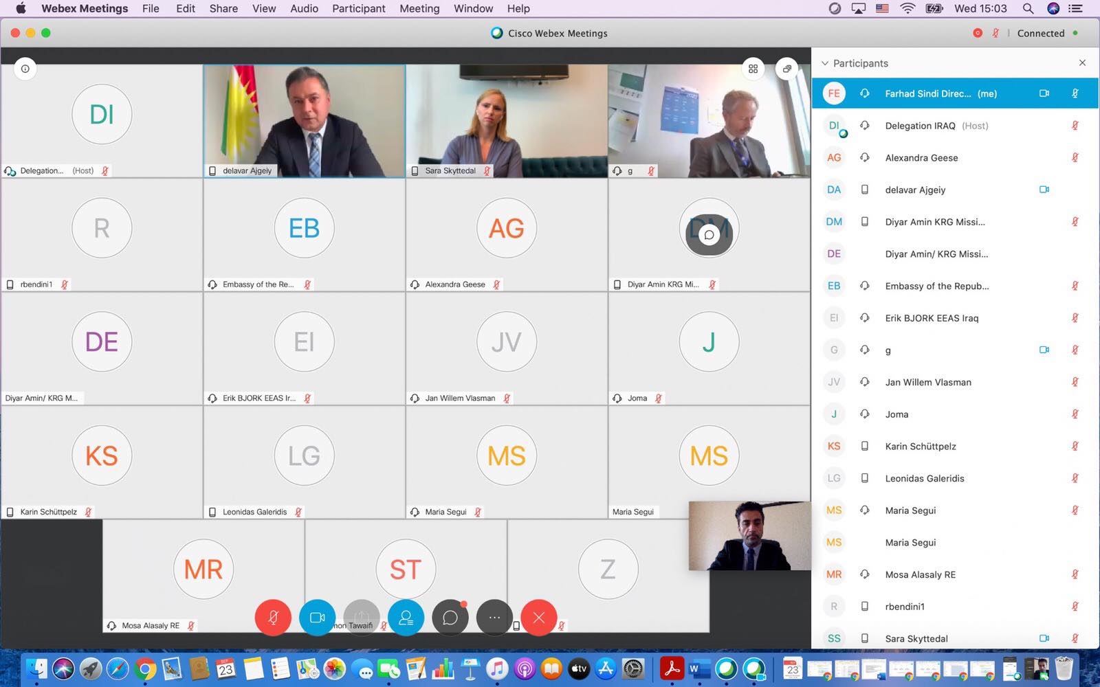 لە کۆبوونەوەکەدا کە بە رێگەی ڤیدیۆکۆنفرانس بەڕێوە چوو، نوێنەری حکومەتی هەرێمی کوردستان چەند بابەتێکی بۆ بەشداربووان خستەڕوو کە گرنگترینیان تایبەت بوو بە تیشک خستنەسەر پەیوەندییەکانی نێوان هەرێمی کوردستان و یەکێتی ئەوروپاو رەوتی دانوساندنەکانی نێوان هەردوو لا و مەترسی سیاسەتی بە عەرەبکردنی کەرکووک و ناوچە کوردستانییەکانی دەرەوەی هەرێم و پرسی ئەمن و ئاسایشی ئەو ناوچانە و مەترسی سەرھەڵدانەوەی داعش.  جیا لەمەش و لە تەوەرێکیدیکەدا پرۆسەی چاکسازی حکومەتی هەرێمی کوردستان و  چەند پرسێکی تر خرانە بەر باسەوە.