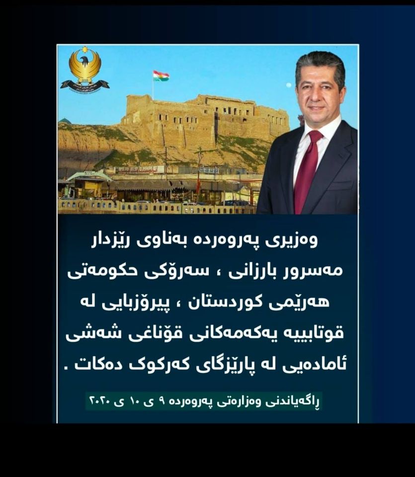 مهسرور بارزانی، سهرۆكی حكومهتی ههرێمی كوردستان، پیرۆزبایی ئاراستهی قوتابیانی یهكهمی خوێندنی كوردیی له شاری كهركووك كرد.