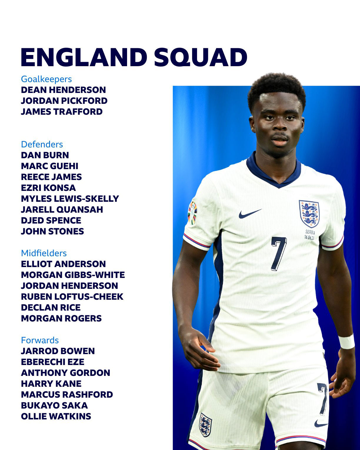 تۆخێل راهێنەری ئینگلاند لیستی یاریزانەکانی بانگهێشتکراوەکانی بڵاوکردەوە و هەریەکە لە جوود بێلینگهام، فیل فۆدن و جاك گریلیشی تێدا نەبوو.