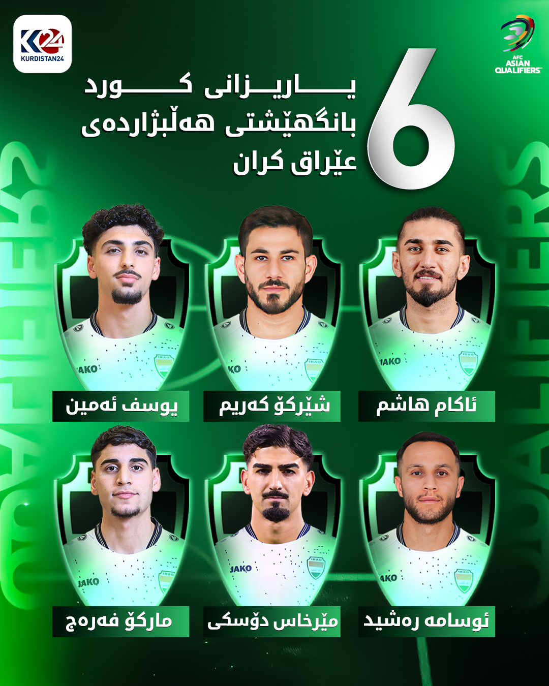 لیستی یاریزانانی هەڵبژاردەی عێراق بۆ پاڵاوتنەكانی مۆندیال راگەیاندرا و شەش یاریزانی كورد بانگهێشتكراون لە نێویاندا سەرلەنوێ بانگهێشتی شێركۆ كەریم و ئاكام هاشم كرانەوە.